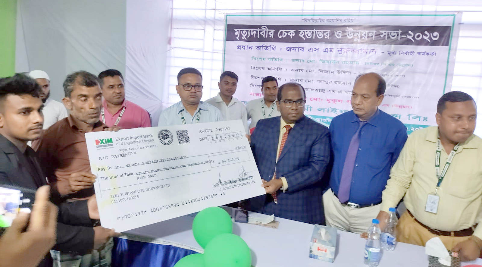 ২৬/০২/২০২৩ তারিখে জেনিথ ইসলামী লাইফের মৃত্যুদাবী চেক হস্তান্তর ও উন্নয়ন সভা অনুষ্ঠিত হয়। আব্দুর রহিম প্রামাণিক মাত্র ১টি মাসিক ১,০০০/-