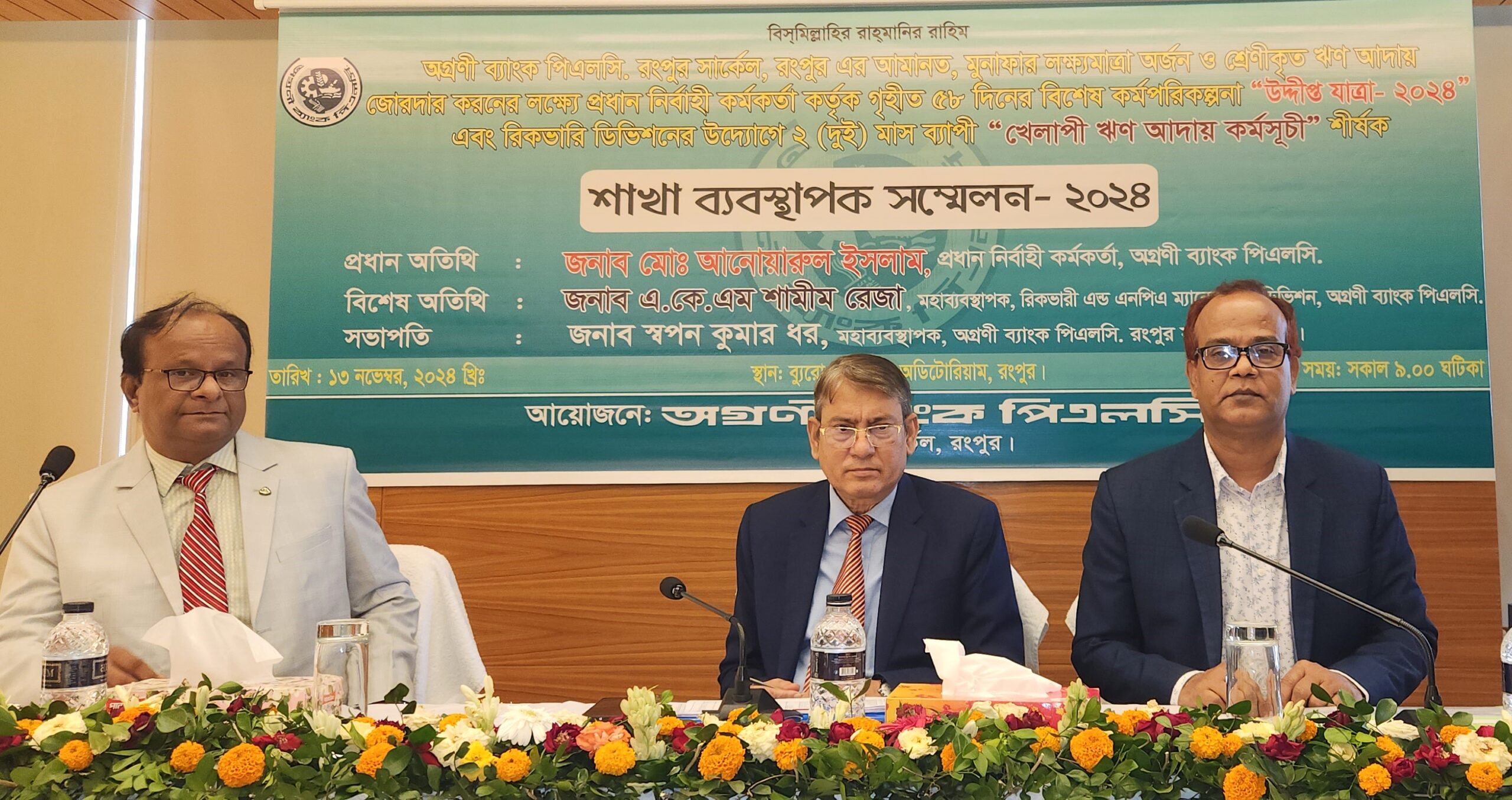 অগ্রণী ব্যাংক পিএলসি’র রংপুর সার্কেলাধীন ব্যাংকের শ্রেণীকৃত ঋণ হ্রাস ও ঋণ আদায় কার্যক্রম জোরদারকরণের লক্ষ্যে প্রধান নির্বাহী কর্মকর্তা কর্তৃক প্রদেয়