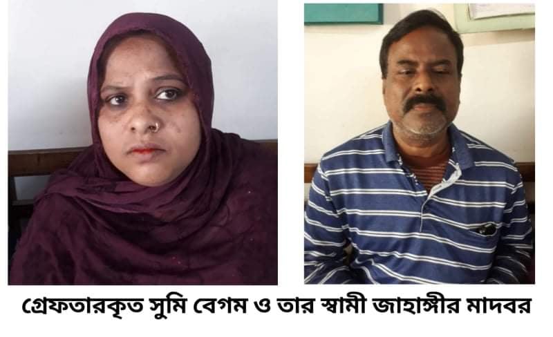 নারায়ণগঞ্জের সিদ্ধিরগঞ্জে গ্রেফতারী পরোয়ানা ভুক্ত পলাতক আসামী পিতা মৃত রফিক মাতবর ছেলে মোঃ জাহাঙ্গীর মাতবর (৪৭), তার স্ত্রী সুমি বেগমকে