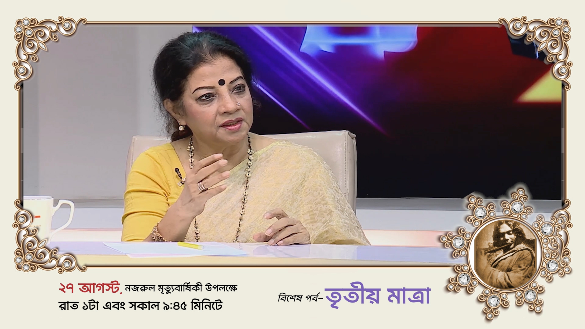 জাতীয় কবি কাজী নজরুল ইসলামের মৃত্যুবার্ষিকীতে কবিকে নিয়ে বিশেষ তৃতীয়মাত্রা প্রচারিত হবে ২৭ আগস্ট রাত ১ টা এবং সকাল ৯.৪৫