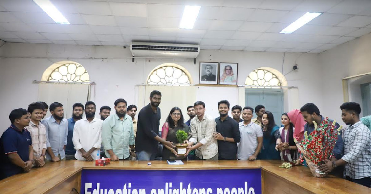 জগন্নাথ বিশ্ববিদ্যালয়ের (জবি) নবনিযুক্ত ষষ্ঠ উপাচার্য অধ্যাপক ড. সাদেকা হালিমের সঙ্গে প্রগতিশীল চিন্তাধারা ও মুক্তিযুদ্ধের স্বপক্ষের শক্তির সাংবাদিকদের সংগঠন জগন্নাথ
