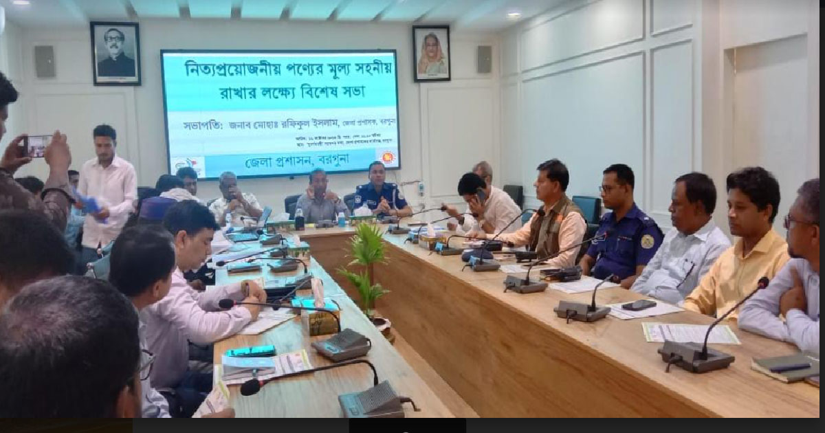 নিত্যপ্রয়োজনীয় পণ্যের মূল্য সহনীয় রাখার লক্ষে বৃহস্পতিবার , ১৩ অক্টোবর বরগুনা জেলা প্রশাসক মোহাঃ রফিকুল ইসলামের সভাপতিত্বে জেলা প্রশাসকের কার্যালয়ে