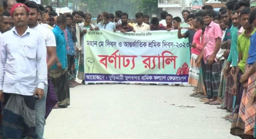 আন্তর্জাতিক মে দিবসে শ্রমিকদের বকেয়া পাওনা ৪৪ কোটি টাকা পরিশোধের দাবিতে মানববন্ধন ও বিক্ষোভ সমাবেশ করেছেন লালমনিরহাটের বুড়িমারী স্থলবন্দরে শ্রমিকরা।