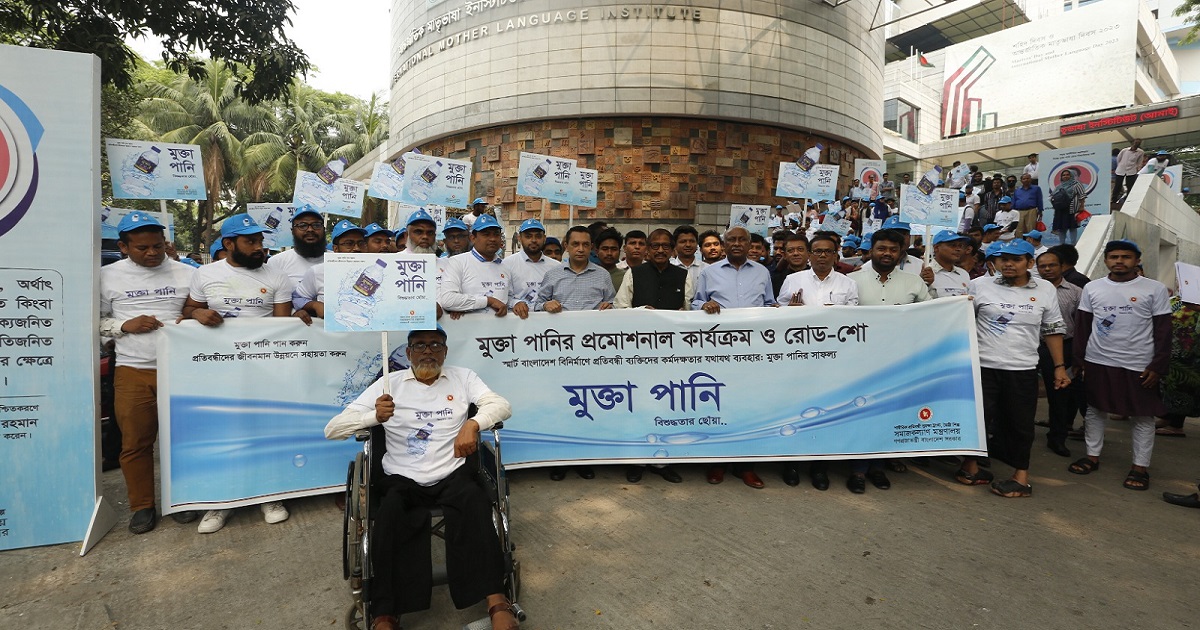 সমাজকল্যাণ মন্ত্রণালয়াধীন শারীরিক প্রতিবন্ধী সুরক্ষা ট্রাস্ট, মৈত্রী শিল্পের প্রতিবন্ধীদের দ্বারা উৎপাদিত বোতলজাত বিশুদ্ধ মুক্তা পানির প্রমোশনাল কার্যক্রমের অংশ হিসেবে আজ