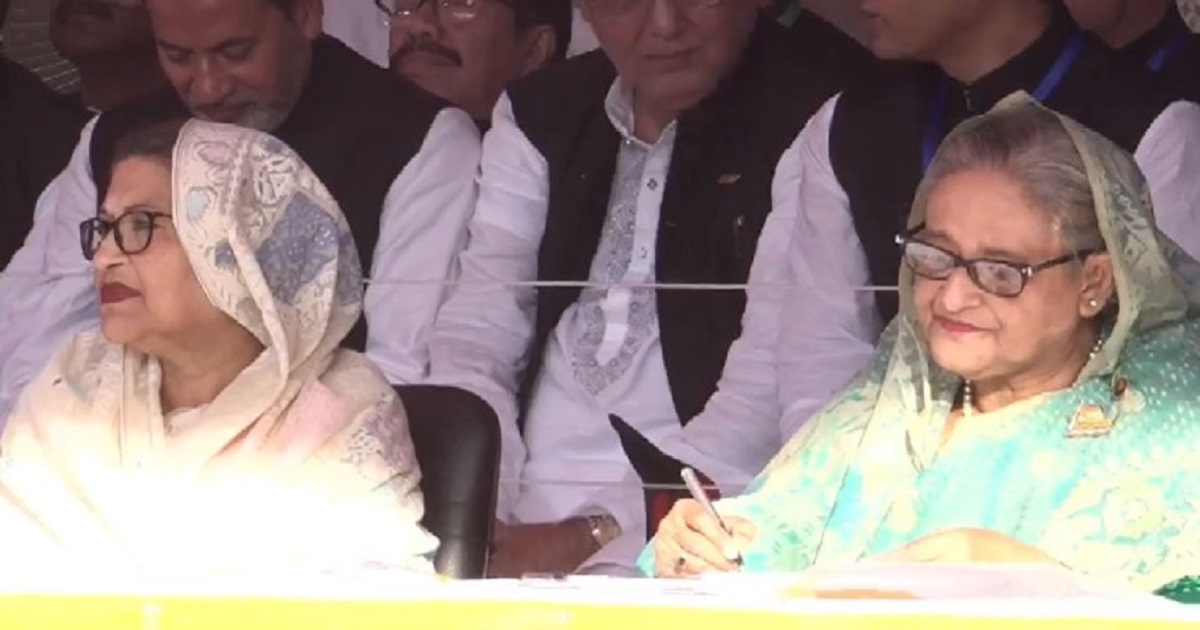 সিলেটের জনসভা মঞ্চে প্রধানমন্ত্রী