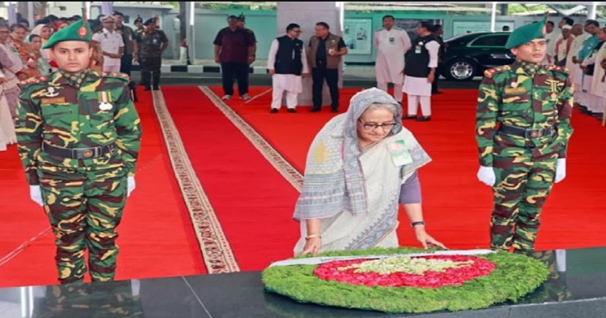 বঙ্গবন্ধুর প্রতিকৃতিতে প্রধানমন্ত্রীর শ্রদ্ধা