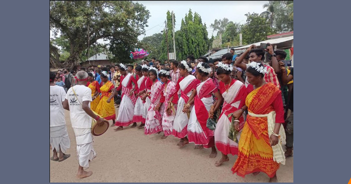 ধামইরহাটে ঢোল আর মাদলের তালে পালিত হলো কারাম উংসব