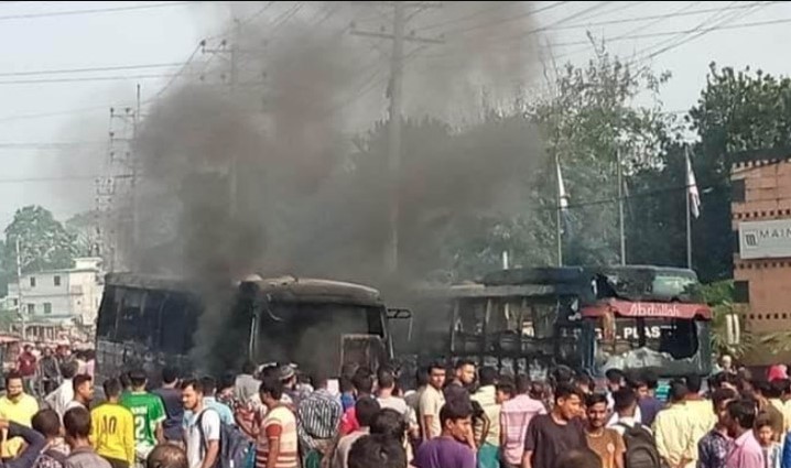 আশুলিয়ায় মোটরসাইকেল আরোহী নিহত, দুই বাসে আগুন