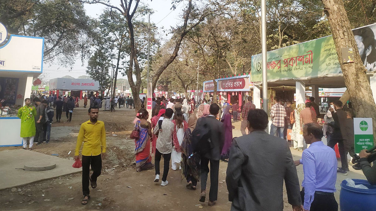 ছুটির দিনে জমে উঠছে বইমেলা