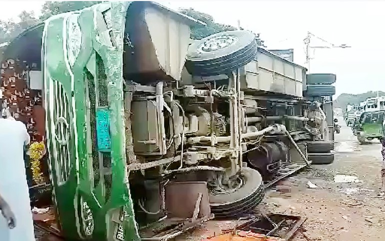 রাজধানীতে বাস উল্টে ১৯ যাত্রী আহত