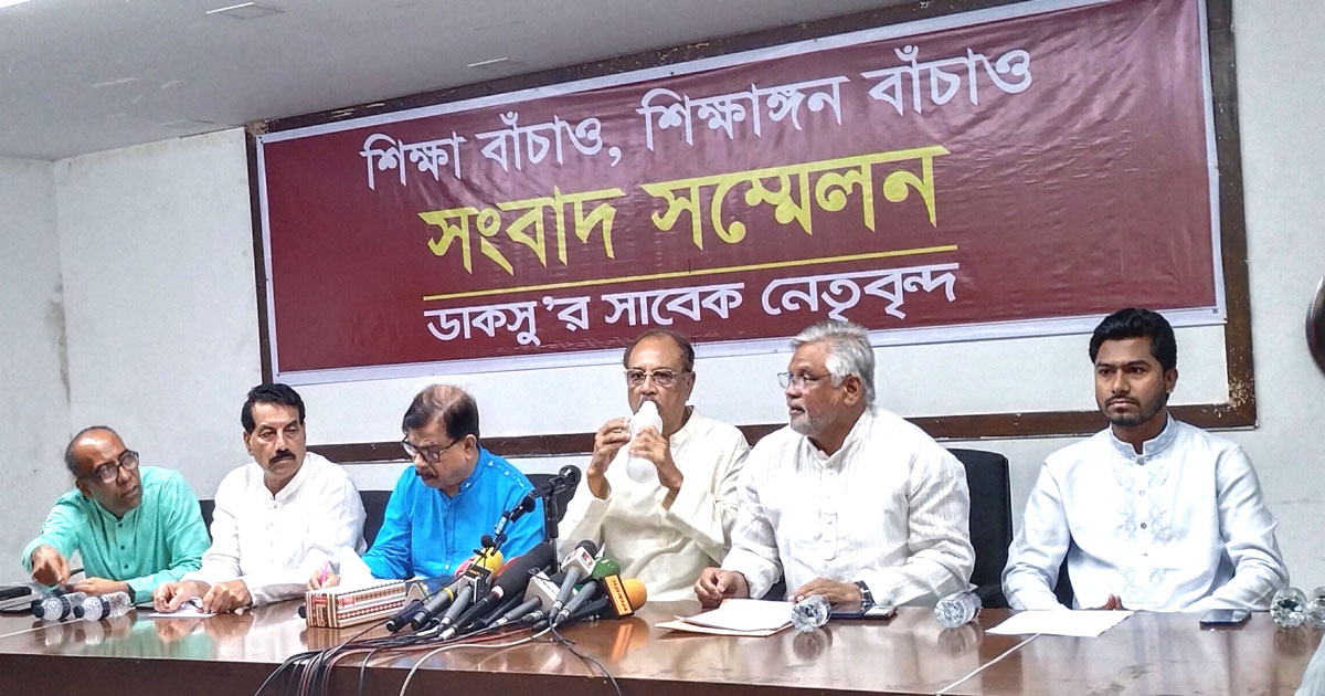 ডাকসু’র সাবেক নেতৃবৃন্দের উদ্যোগে “শিক্ষা বাঁচাও, শিক্ষাঙ্গণ বাঁচাও” শীর্ষক সঙ্গলবার, ৩১ মে সকাল ১১ টায় জাতীয় প্রেস ক্লাবে এক সংবাদ