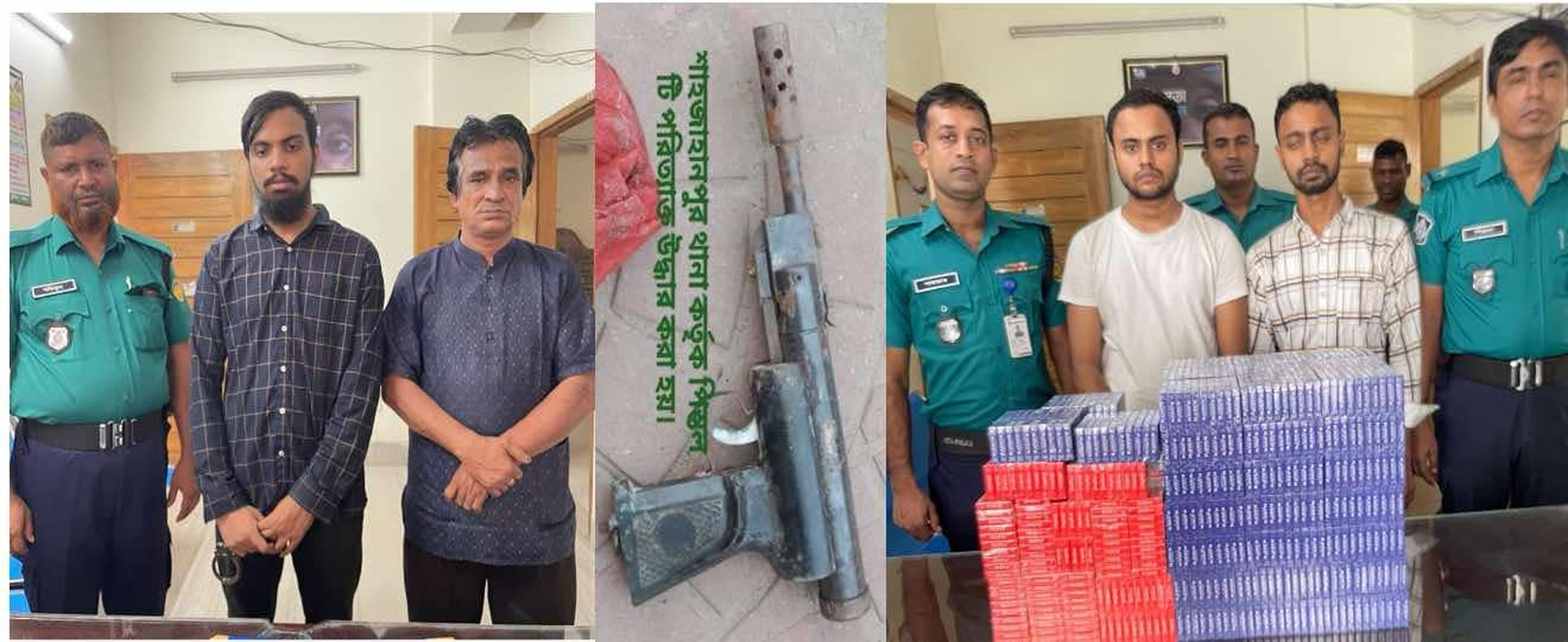 বাসার তালা কেটে স্বর্ণালংকার চুরি,বিপুল পরিমান বিদেশী সিগারেটসহ গ্রেফতার:৫, শুটার পিস্তল উদ্ধার !