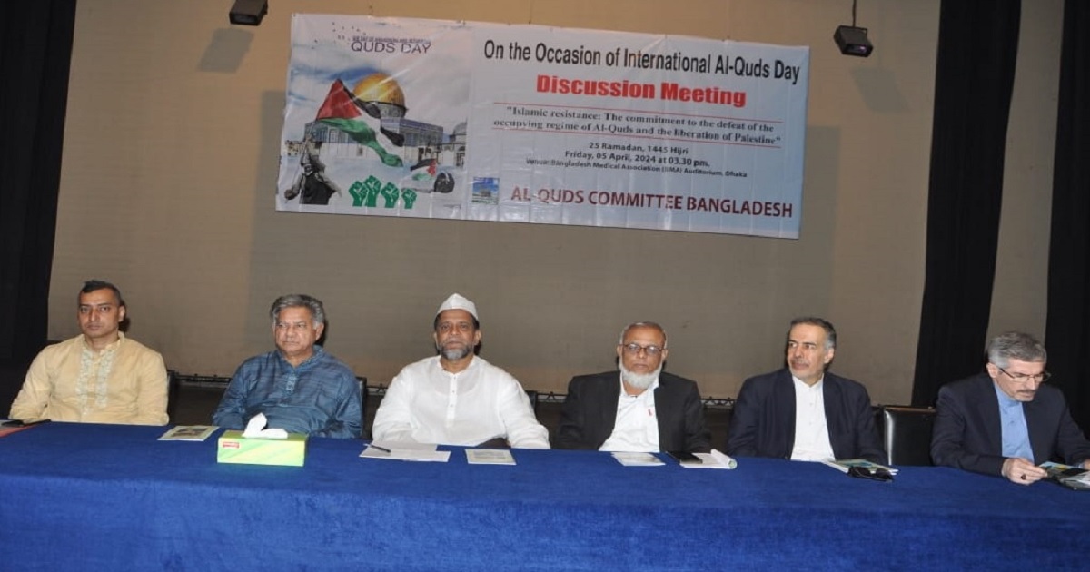 আন্তর্জাতিক আল-কুদ্স দিবস উপলক্ষে শুক্রবার রাজধানীর বাংলাদেশ মেডিকেল এসোসিয়েশন (বিএমএ ) অডিটরিয়ামে এক সেমিনার অনুষ্ঠিত হয়েছে। আল-কুদস কমিটি বাংলাদেশ এর উদ্যোগে