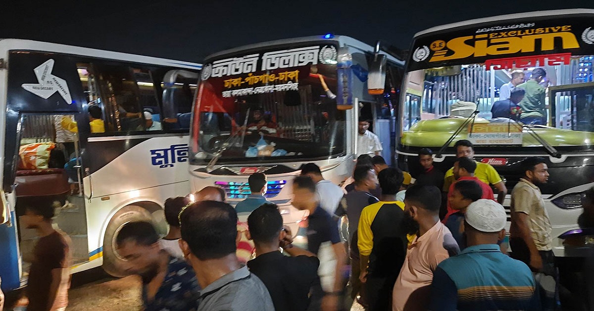 বাড়ি ফেরা মানুষের চাপ বেড়েছে মহাখালী বাস টার্মিনালে