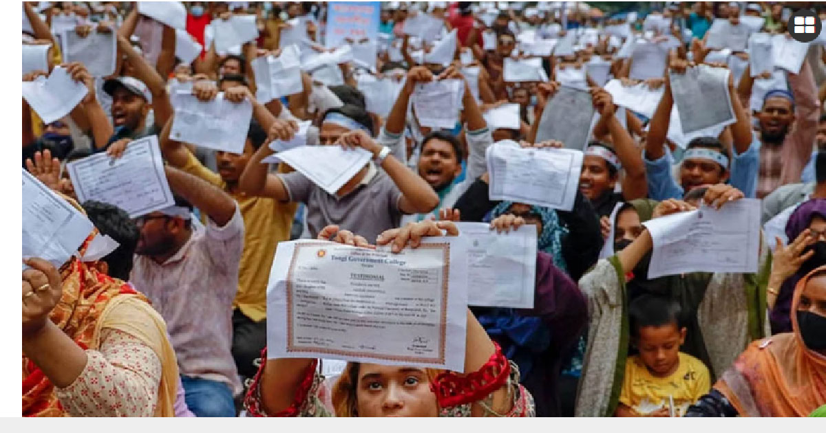 সরকারি চাকরিতে আবেদনের বয়সসীমা ৩৫ করাসহ তিন দফা দাবিতে শাহবাগ অবরোধ করেছে চাকরিপ্রত্যাশীরা। এ সময় আন্দোলনকারীরা প্রতিবাদ হিসেবে প্রতীকী সনদ