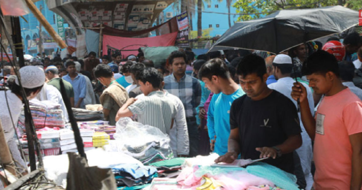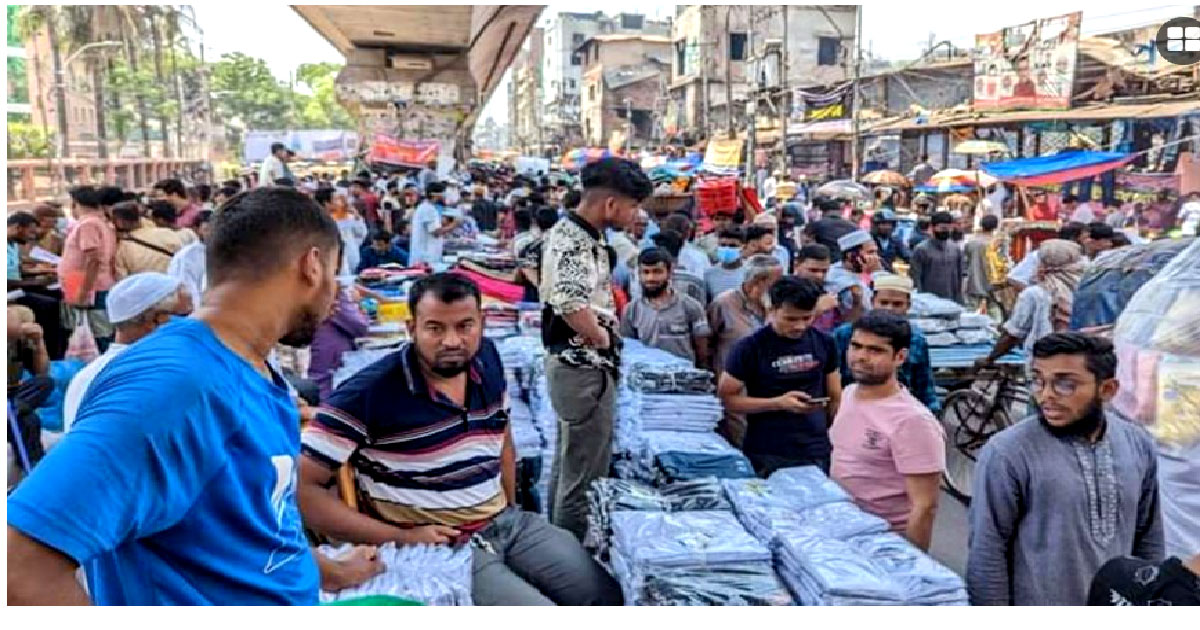 রাস্তা-ফুটপাতে দোকান বসিয়েছেন বঙ্গবাজারের ব্যবসায়ীরা
