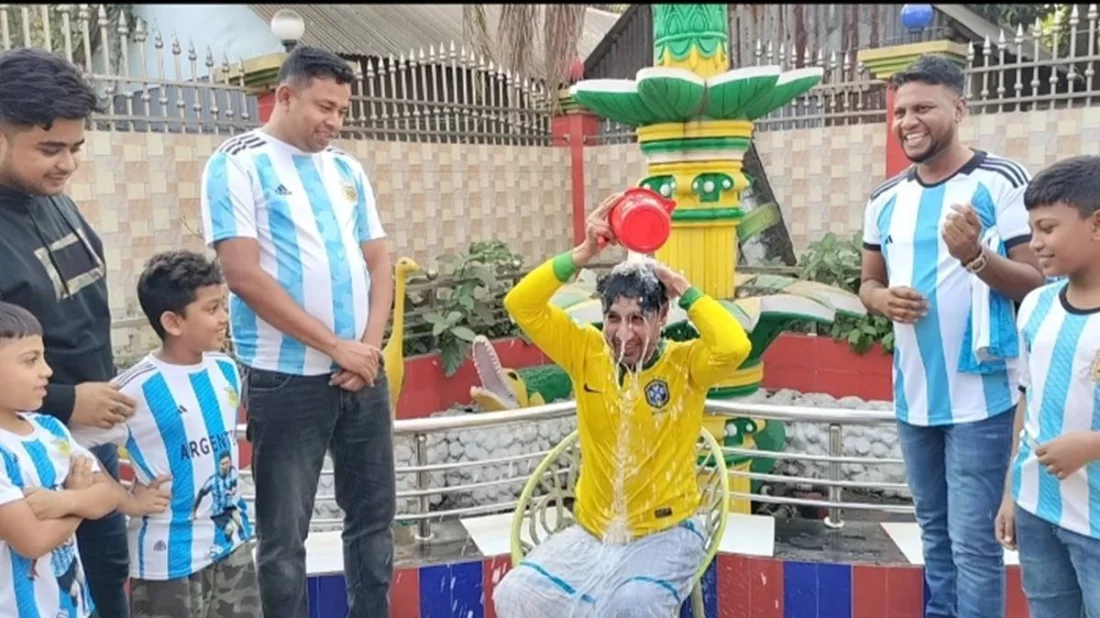 দুধ দিয়ে গোসল করে ব্রাজিল থেকে আর্জেন্টিনায় এলেন সমর্থক