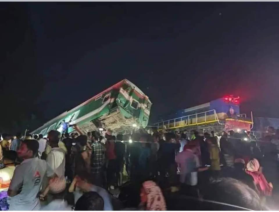 কুমিল্লায় কনটেইনারবাহী ট্রেনে সোনার বাংলা এক্সপ্রেসের ধাক্কা, ৭ বগি লাইনচ্যুত