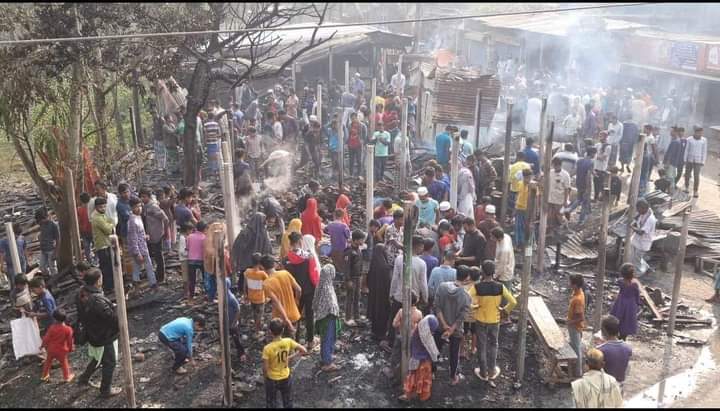 লক্ষ্মীপুরের টুমচর জনতা বাজারে আগুন লেগে ৮ দোকান পুড়ে ছাই ক্ষতি ১৫ লাখ টাকা