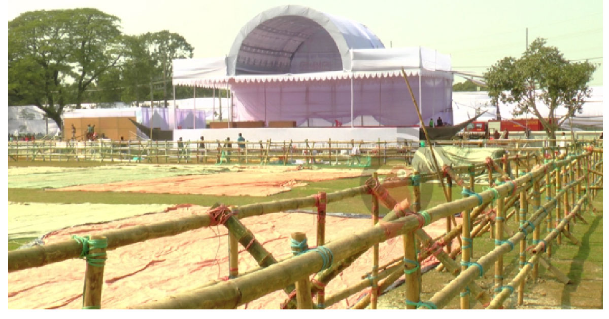 রাজশাহীর ঐতিহাসিক মাদরাসা মাঠ প্রধানমন্ত্রীর জনসভার জন্য প্রস্তুত করা হয়েছে। এরই মধ্যে শেষ হয়েছে মঞ্চ নির্মাণের কাজ। নৌকার আদলে বানানো