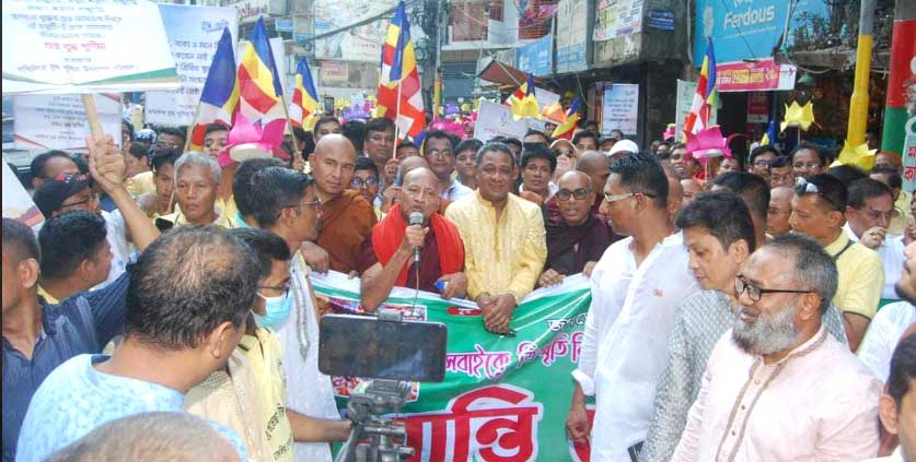 শুভ বুদ্ধ পূর্ণিমা উপলক্ষে আজ সার্বজনীন মঙ্গল শোভাযাত্রা বের করা হয়। বুধবার (২২ মে) দুপুরে চট্টগ্রাম বৌদ্ধ বিহারের সামনে থেকে