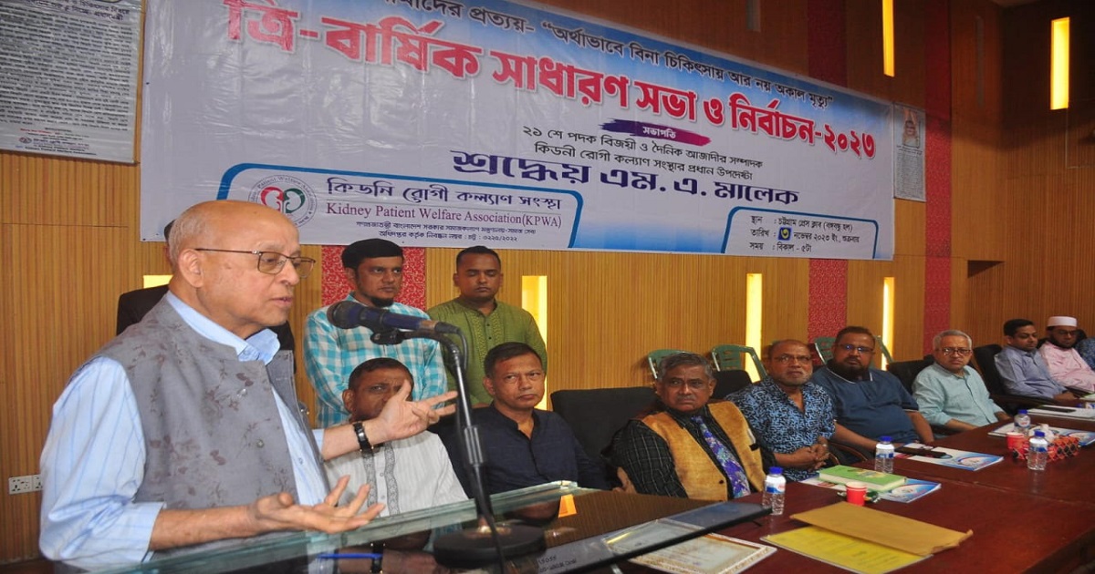 “কিডনি রোগী কল্যাণ সংস্থার” ত্রি-বার্ষিক নির্বাচনে এস.এম. জাহেদুল হক সভাপতি, অধ্যাপক শাব্বির আহমদ সাধারণ সম্পাদক ও ওয়াহিদ মালেক “এম.এ. মালেক