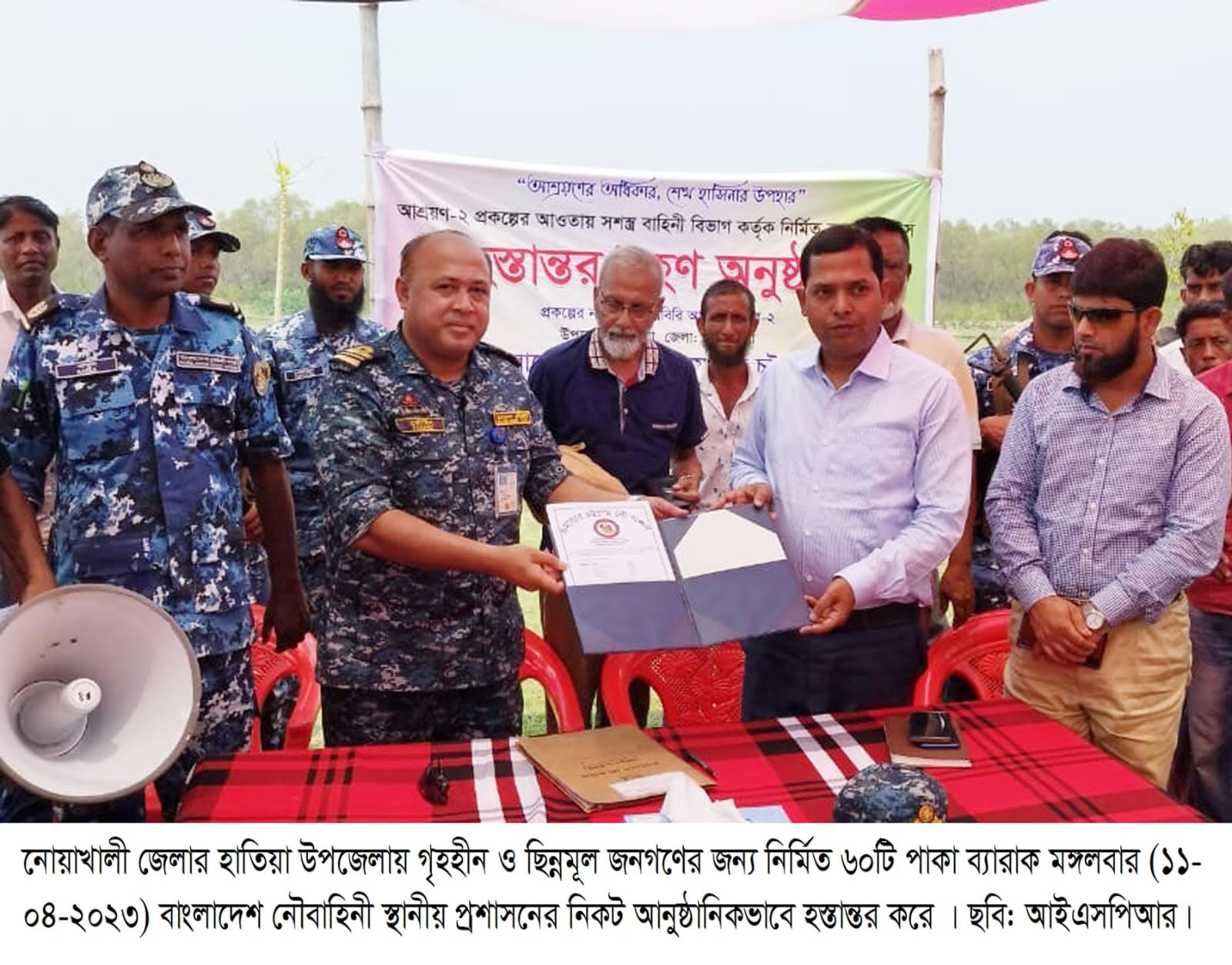 হাতিয়া উপজেলায় আশ্রয়ণ-২ প্রকল্পের ৬০টি ব্যারাক হাউজ হস্তান্তর করলো বাংলাদেশ নৌবাহিনী