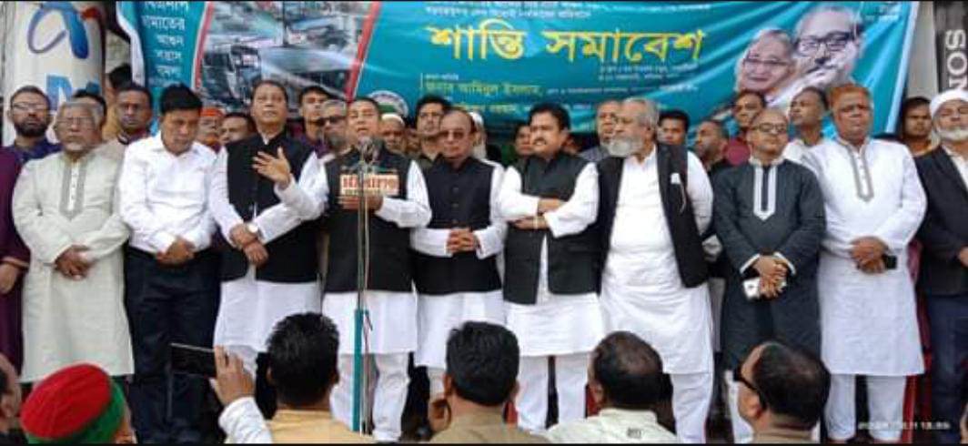 বিএনপি জামায়াতের আন্দোলনের নামে আগুন সন্ত্রাস হামলা ভাংচুর সহ দেশ বিরোধী কর্মকান্ডের প্রতিবাদে শান্তি সমাবেশ অনুষ্ঠিত। ১১ই ফেব্রুয়ারী শনিবার সকাল১১