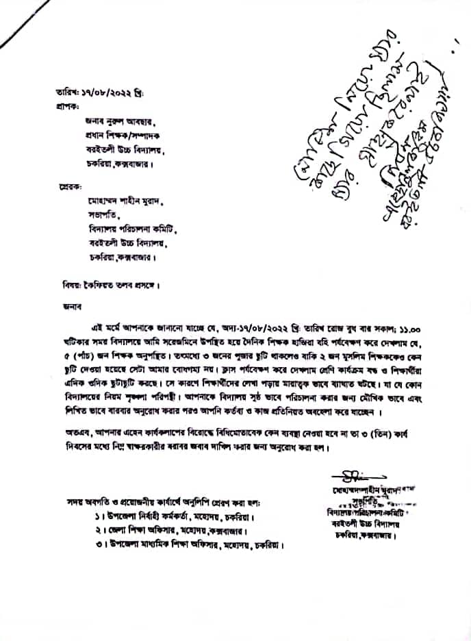 কক্সবাজার জেলার চকরিয়া উপজেলার বরইতলী উচ্চ বিদ্যালয়ের প্রধান শিক্ষক নুরুল আবছারের বিরুদ্ধে অর্থ আত্মসাতের অভিযোগ উঠেছে। বিদ্যালয়ে যোগদান করার পর