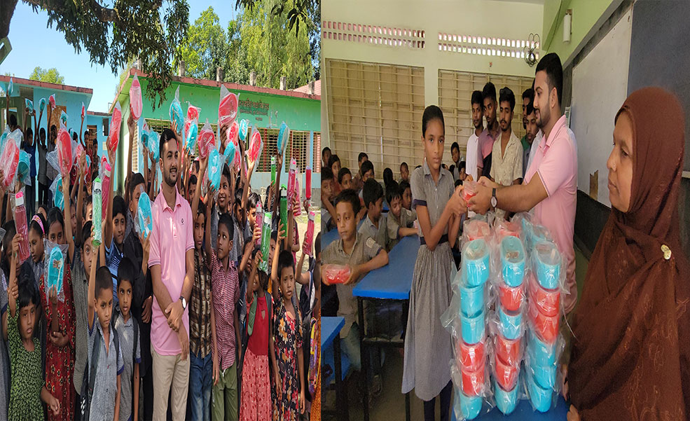প্রাথমিক স্কুলের কোমলমতি শিক্ষার্থীদের মাঝে টিফিনবক্স ও মামপট উপহার বিতরণ করেন -সাংবাদিক বুলবুল আহমেদ!