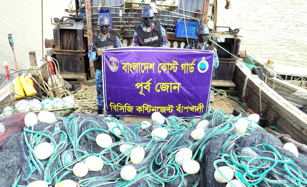 বাঁশখালী উপকূলে কোস্ট গার্ড ও মৎস্য অধিদপ্তরের যৌথ অভিযানে ট্রলিং বোটসহ জাল জব্দ