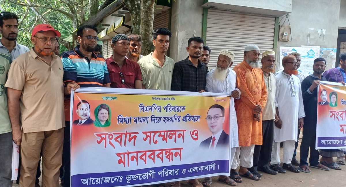 বিএনপি পরিবারকে মিথ্যা মামলা দিয়ে হয়রানির প্রতিবাদে কালকিনিতে মানববন্ধন ও প্রতিবাদ সভা