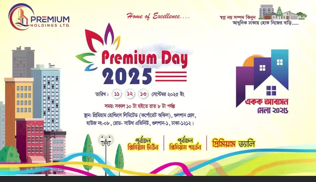 কাল থেকে শুরু হবে ৩ দিন ব্যাপী প্রিমিয়াম হোল্ডিং এর বর্ষপূর্তী অনুষ্ঠান ও একক আবাসন মেলা
