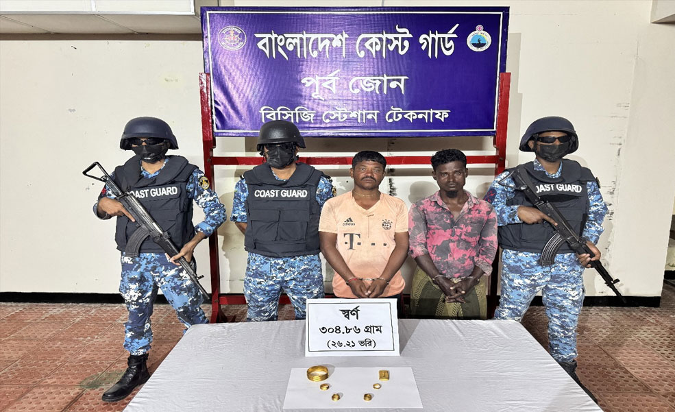 টেকনাফে প্রায় ৪৬ লাখ টাকার স্বর্ণসহ দুই পাচারকারী আটক
