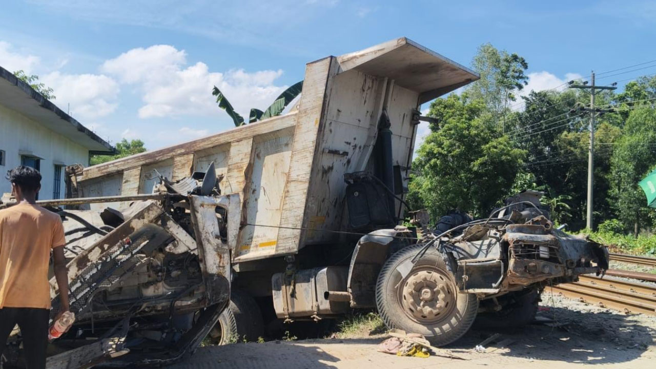 গাজীপুরে ডাম্প ট্রাকে ট্রেনের ধাক্কায় ট্রাকের চালক-হেলপার নিহত