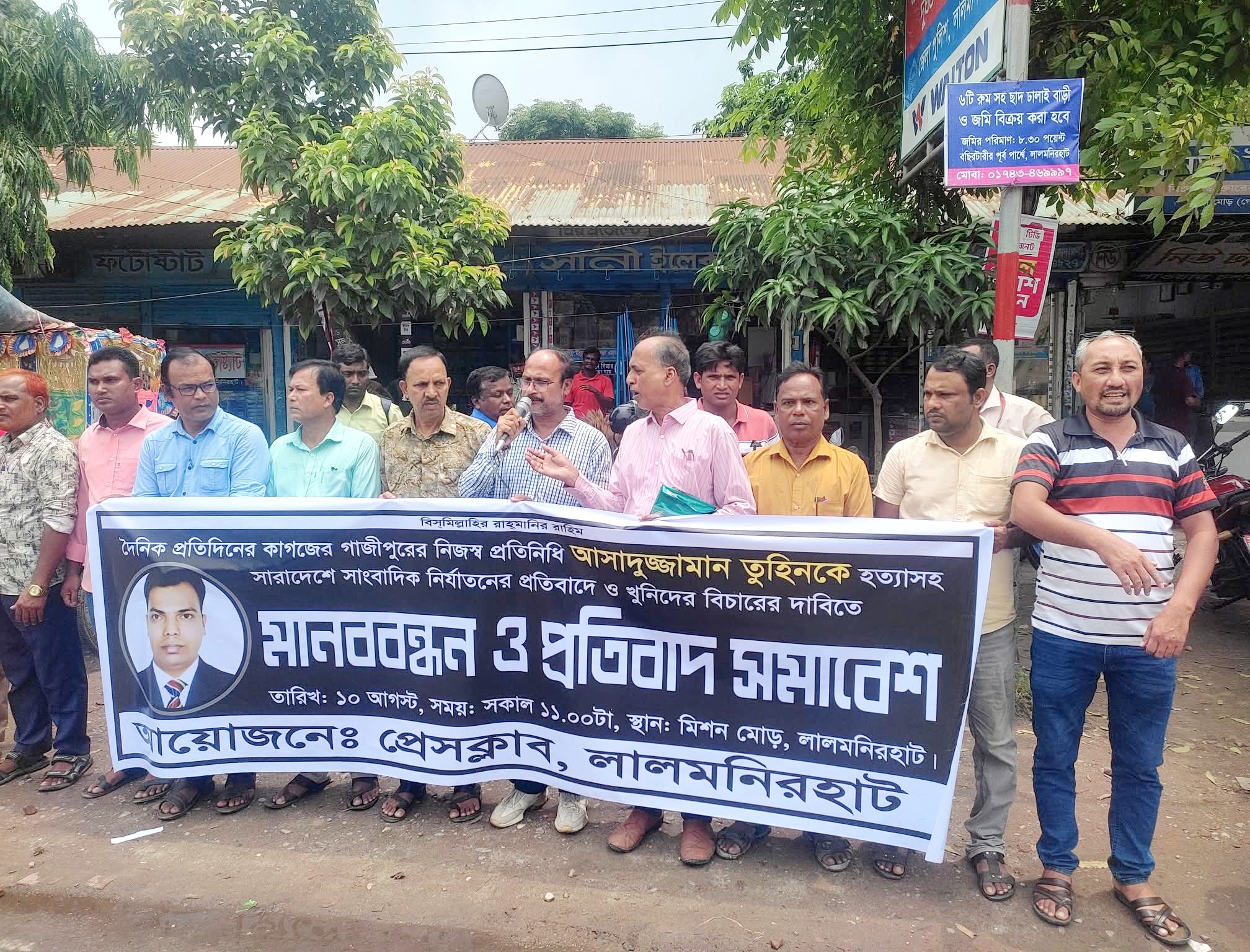 লালমনিরহাটে “সাংবাদিক নির্যাতন ও হত্যার বিচার চাই, সাংবাদিকদের নিরাপত্তা নিশ্চিত করো, কলমের স্বাধীনতা রক্ষা করো” স্লোগান নিয়ে দৈনিক প্রতিদিনের কাগজ’র
