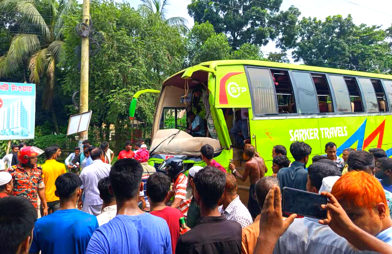 নিয়ন্ত্রণ হারিয়ে বাসের ধাক্কায় নিহত-১ আহত-১০