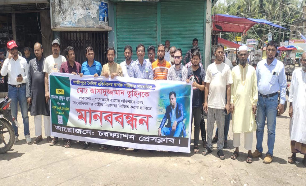 সাংবাদিক তুহিন হত্যার প্রতিবাদে চরফ্যাশন প্রেসক্লাবের মানববন্ধন