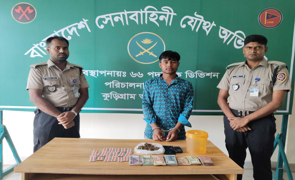 কুড়িগ্রামে সেনাবাহিনীর যৌথ অভিযানে ট্যাপেন্টাডল ট্যাবলেট, গাঁজা, নগদ টাকা, মোবাইল ফোনসহ মাদক কারবারী আটক