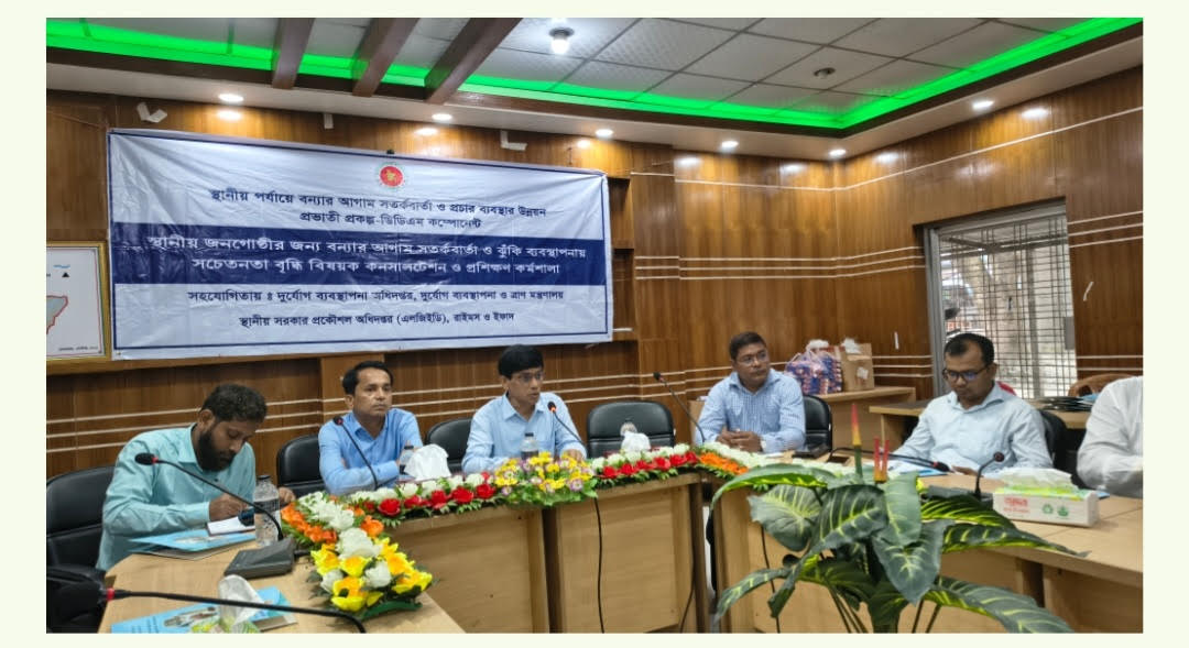স্থানীয় জনগোষ্ঠীর জন্য বন্যার আগাম সতর্কবার্তা ও ঝুঁকি ব্যবস্থাপনায় সচেতনতা বৃদ্ধি বিষয়ক কনসালটেশন ও প্রশিক্ষণ কর্মশালা অনুষ্ঠিত। রবিবার সকালে কুড়িগ্রাম
