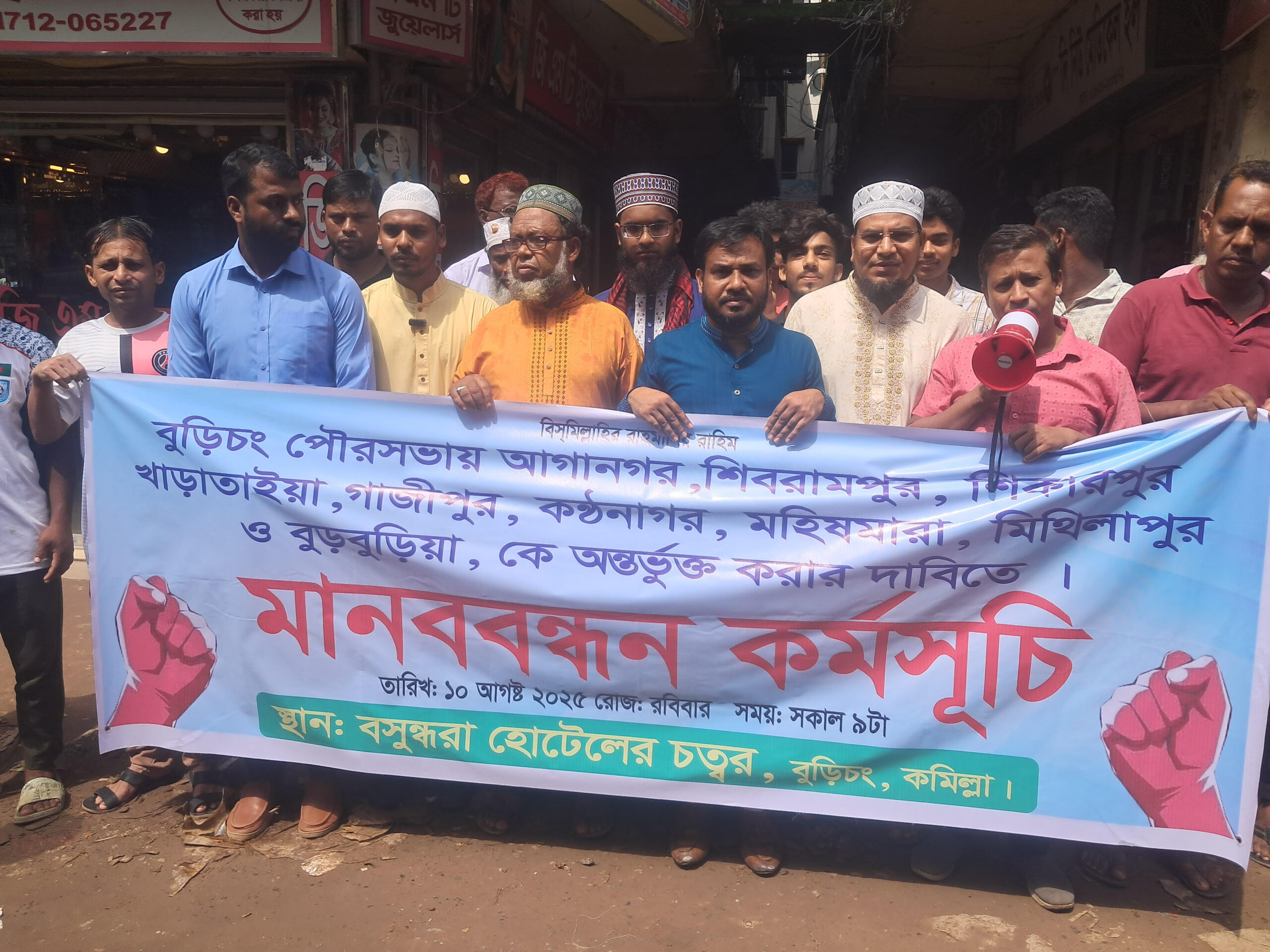 বুড়িচং পৌরসভায় অন্তর্ভুক্ত করার দাবিতে মানববন্ধন