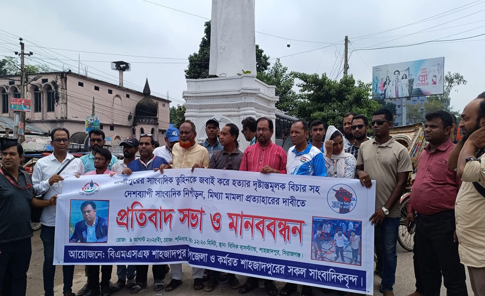 সাংবাদিক তুহিন হত্যার প্রতিবাদে শাহজাদপুরে মানববন্ধন