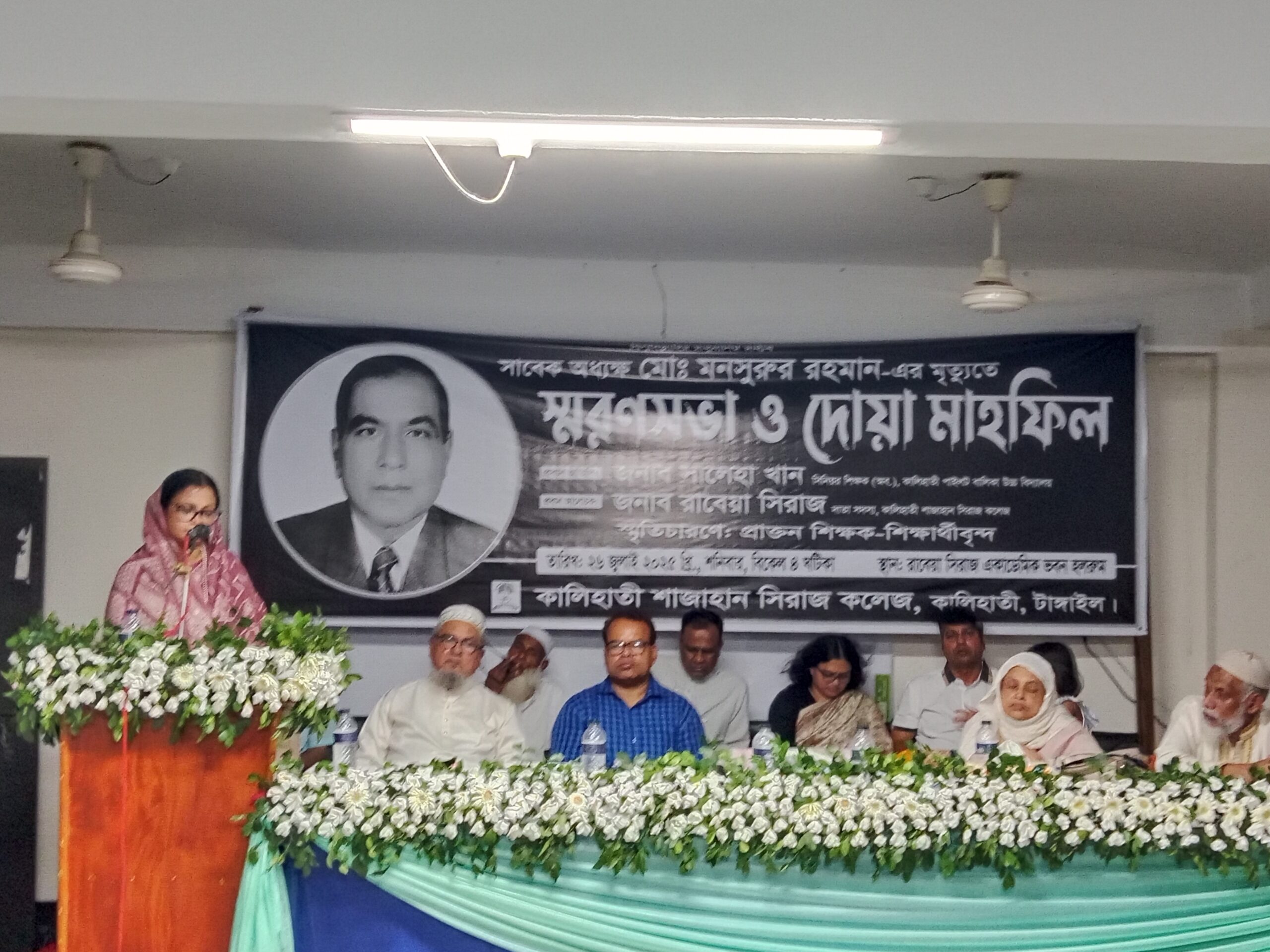 কালিহাতী শাজাহান সিরাজ কলেজের সাবেক অধ্যক্ষ মনসুরুর রহমান এর মৃত্যুতে স্মরণ সভা ও দোয়া মাহফিল হয়েছে। শনিবার বিকালে রাবেয়া সিরাজ