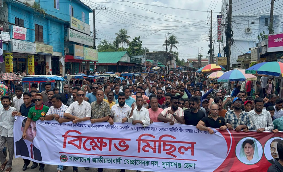 সুনামগঞ্জে স্বেচ্ছাসেবক দলের বিক্ষোভ মিছিল