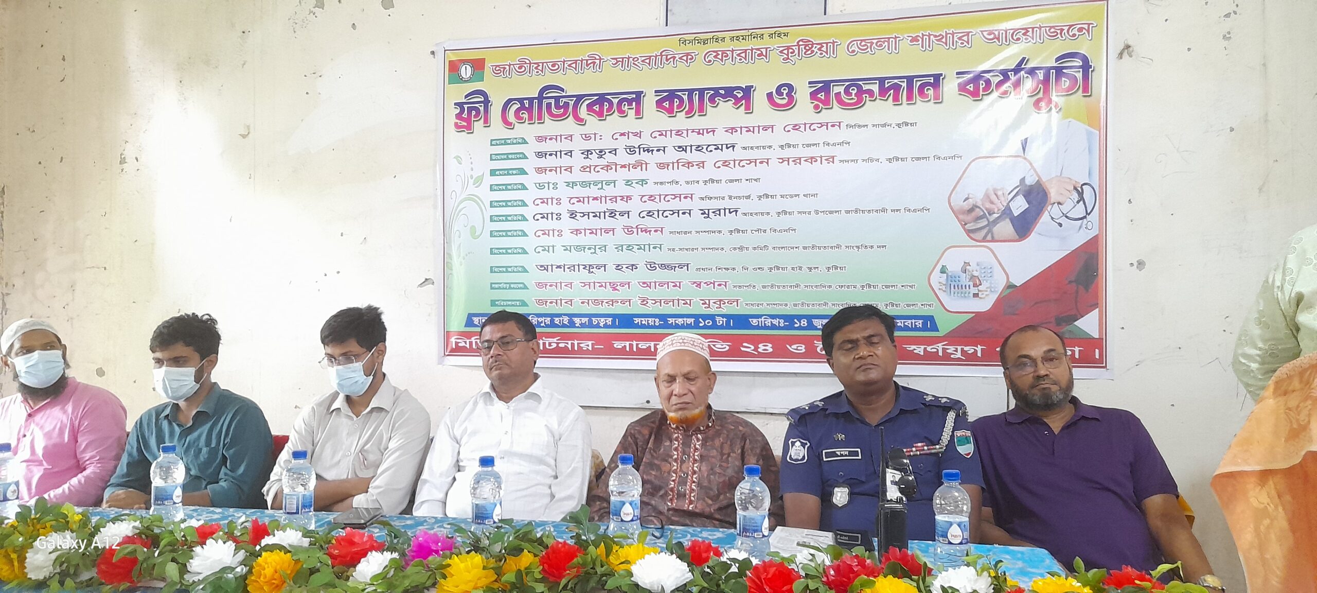 কুষ্টিয়ায় জাতীয়তাবাদী সাংবাদিক ফোরামের আয়োজনে ফ্রী মেডিকেল ক্যাম্প ও রক্তদান কর্মসূচী অনুষ্ঠিত