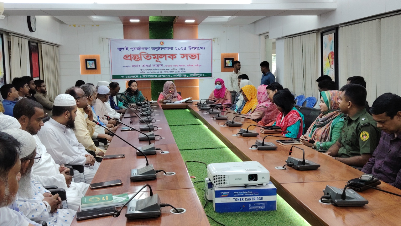 আগামী জুলাই পুনর্জাগরণ অনুষ্ঠানমালা উপলক্ষ্যে গাজীপুরের কালীগঞ্জে প্রস্তুতিমূলক সভা অনুষ্ঠিত হয়েছে। রোববার (১৩ জুলাই) দুপুরে উপজেলা প্রশাসনের আয়োজনে পরিষদ সম্মেলন