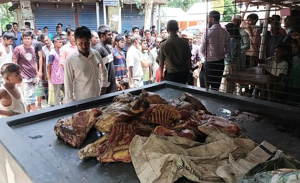 কুড়িগ্রামে মরা গরু জবাই করে মাংস দোকানে নিয়ে আসায় কসাইকে আটক করে পুলিশে সোপর্দ করলেন স্থানীয়রা