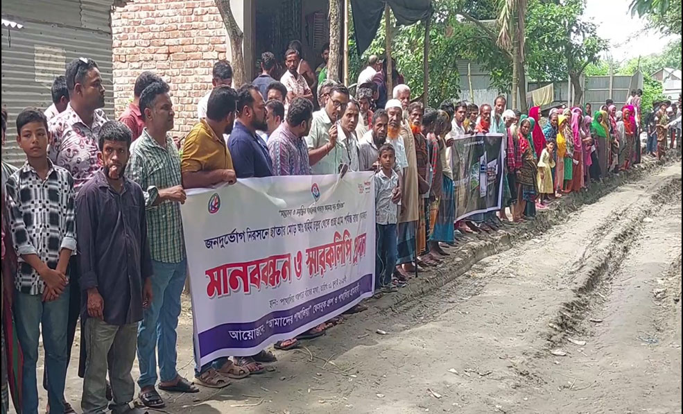 জামালপুরে সড়ক পাকাকরণের দাবীতে মানববন্ধন করেছে ভুক্তভোগী এলাকাবাসী