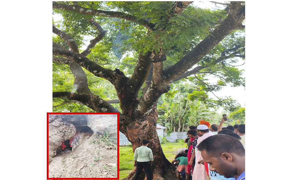 কুড়িগ্রামের চিলমারীতে গাছের কোটরের আগুন, উৎসুক জনতার ভীর