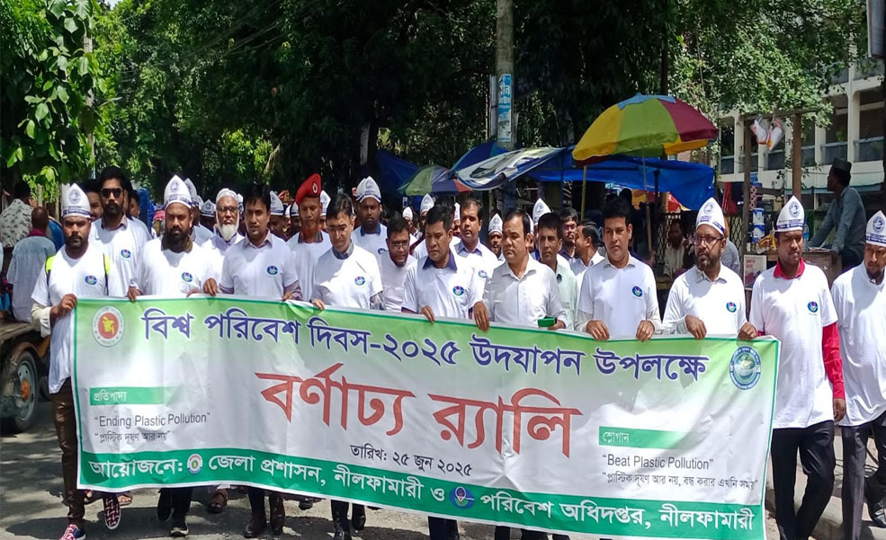 ‘প্লাস্টিক দূষণ আর নয়, বন্ধ করার এখনি সময়’ শ্লোগানে দিনব্যাপী নানা কর্মসুচিতে নীলফামারীতে বিশ্ব পরিবেশ দিবস পালিত হয়েছে বুধবার (২৫জুন)।এ